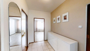 Dispozíciu tvoria: vstupná chodba, priestranná obývacia izba, kuchyňa s východom na balkón, dve samostatné izby (zo spálne je vstup na lodžiu), kúpeľňa a samostatné WC, špajza.