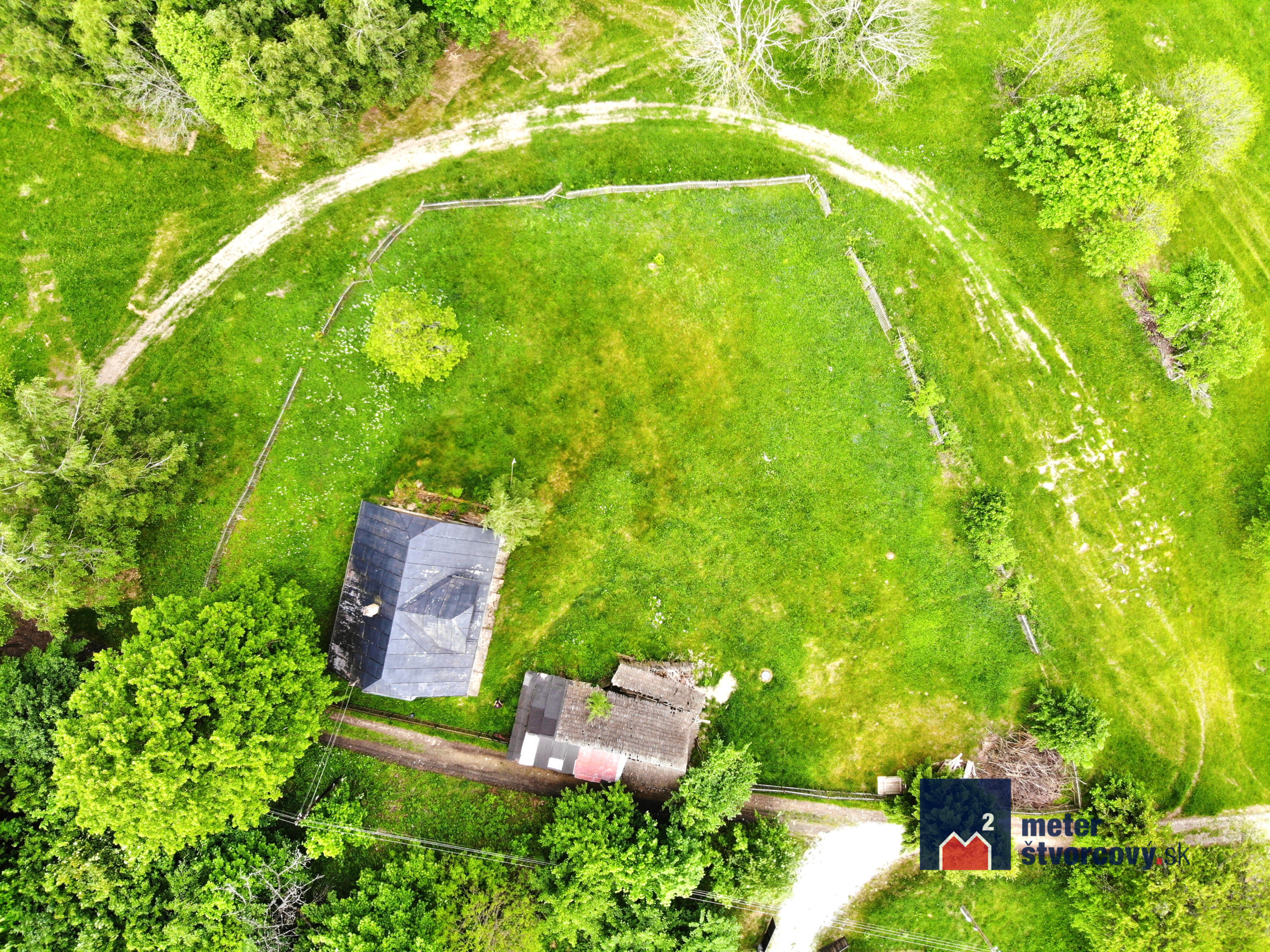 Zastavaná plocha chaty je 98 m2. Pozemok má výmeru 470 m2.