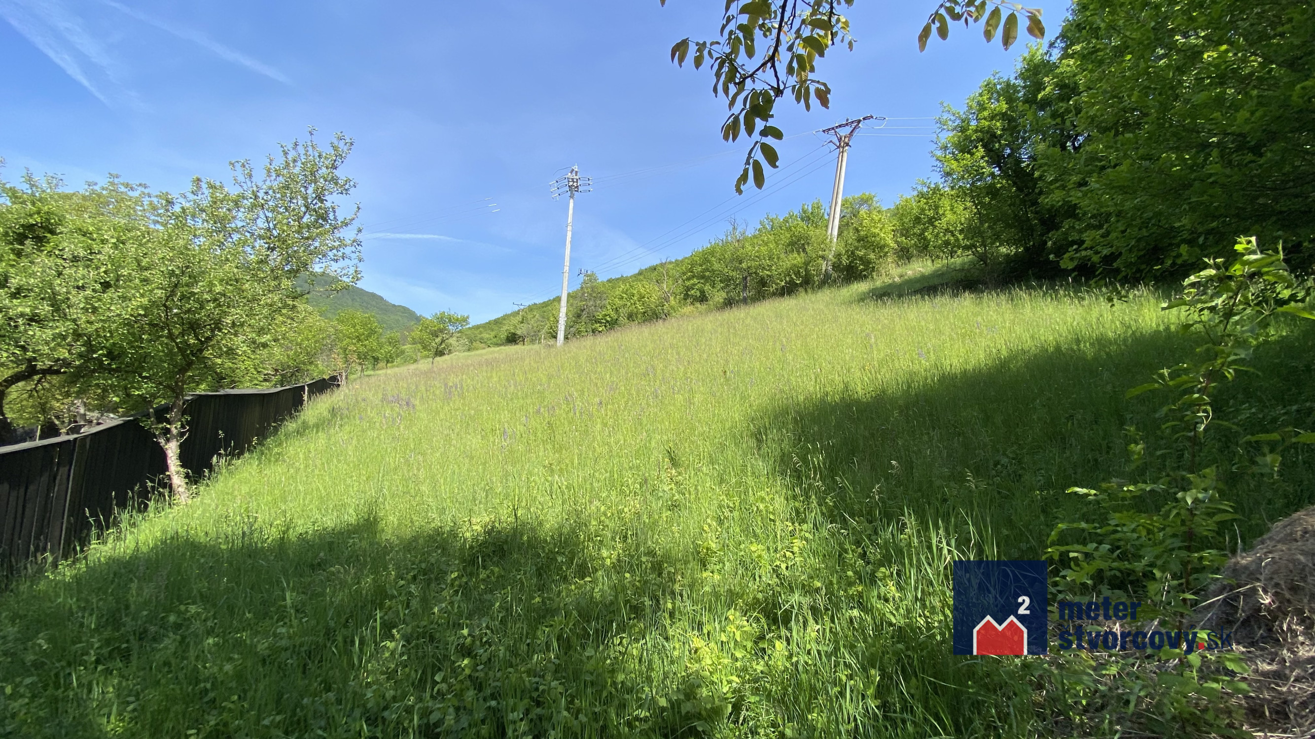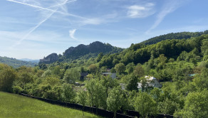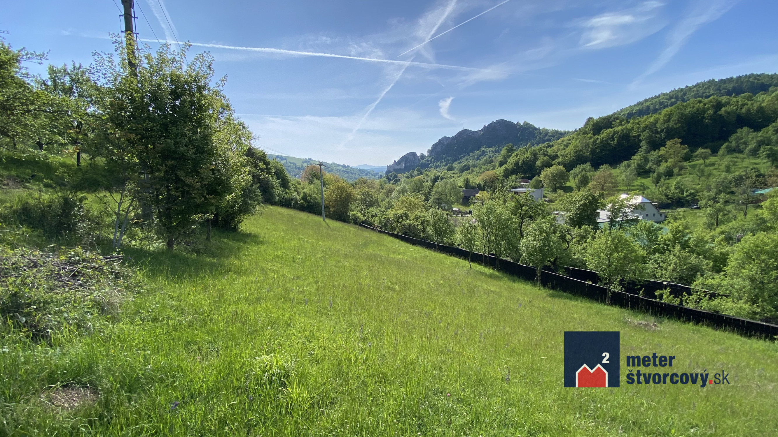 Slnečný pozemok s výhľadom na historický hrad v koncovej obci Lednica, okres Púchov.