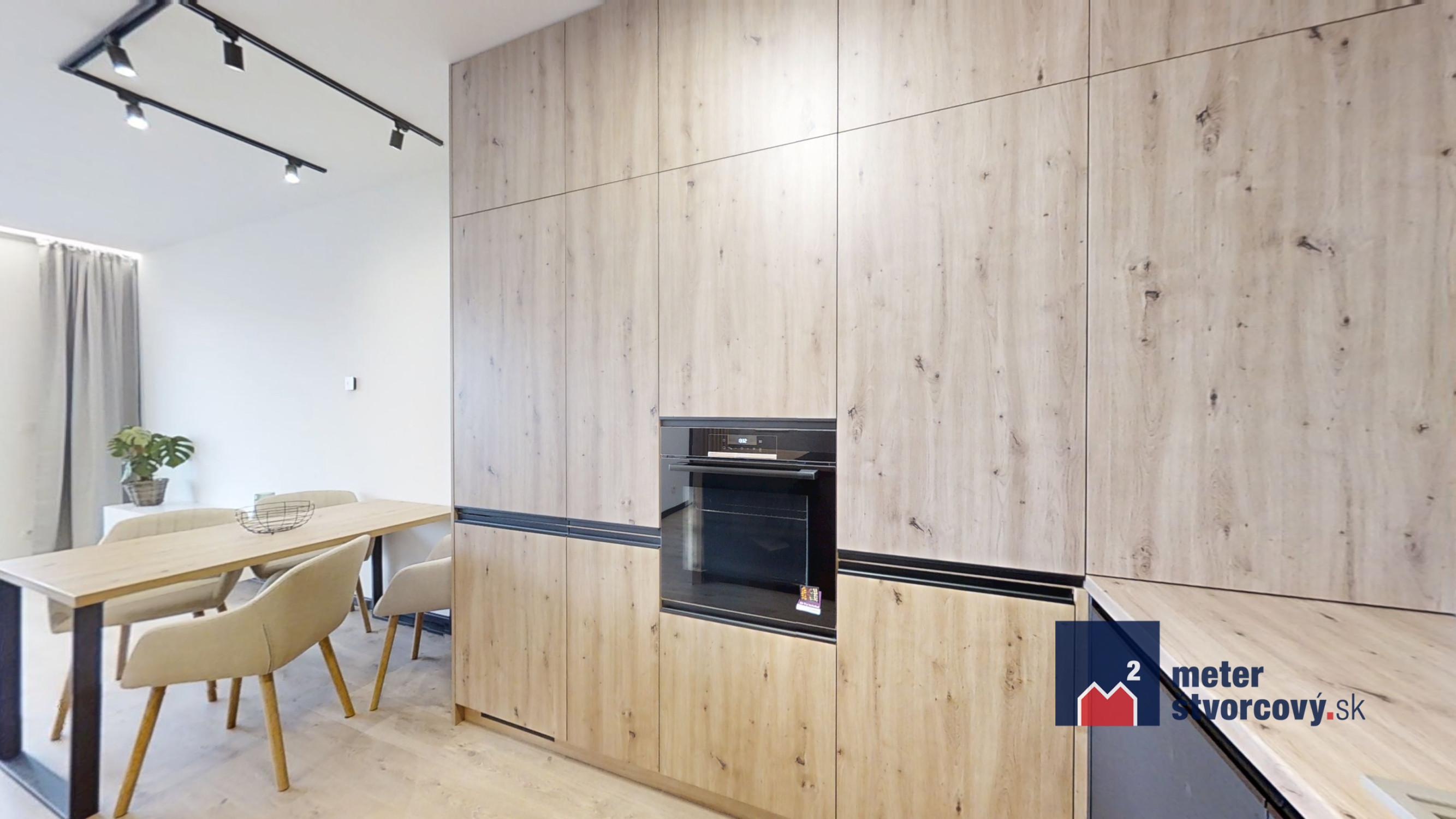 - Kuchynská linka vyrobená na mieru so zabudovanými spotrebičmi (indukčná doska, rúra, umývačka riadu, chladnička s mrazničkou)